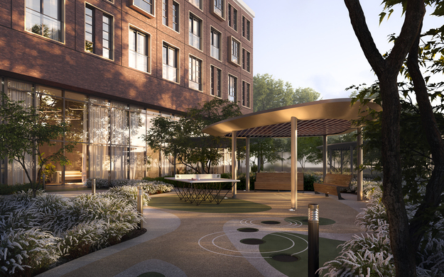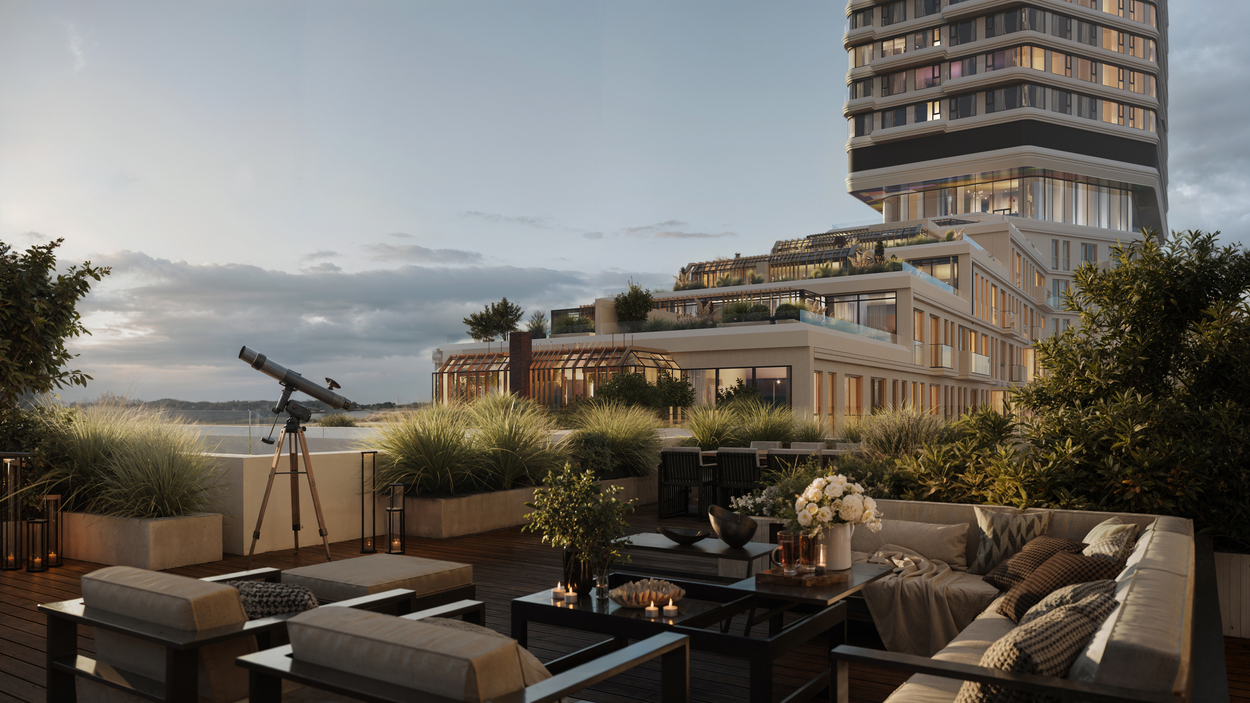 в Роттердаме, футуристичного музея Mercedes-Benz в Штутгарте и частного дома в форме ленты Мебиуса в Нидерландах. Центральным элементом проекта, состоящего из восьми жилых секций переменной высоты от 7 до 39 этажей, стал внутренний двор, утопающий в зелени. В «секретном саду», доступном для жителей, можно будет заниматься йогой и спортом, читать, работать, играть и даже наблюдать за птицами.