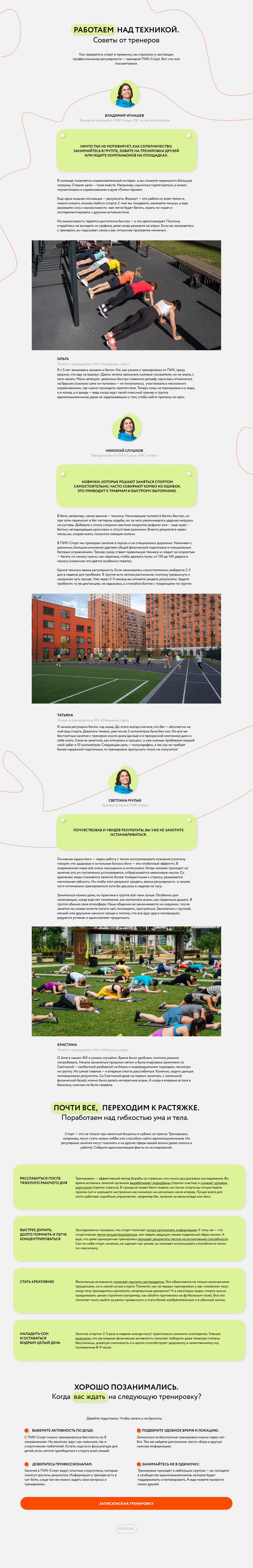 В проекте с девелопером ПИК, который запустил бесплатные тренировки в жилых кварталах по всей Москве, рассказываем, как превратить спорт в привычку. Ну что, давайте немного потренируемся?